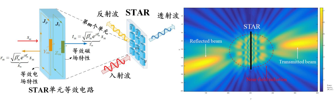 就 STARS 的控制而言,STARS 需要同時考慮每個單元折射和反射信號的控制,于是 STARS 的控制相比傳統(tǒng) RIS 更加復雜。每個 STARS 陣元需要具備獨立可調(diào)的表面電、磁阻抗,這樣,每個單元中的面電流強度(對應(yīng)電阻抗)和渦旋電流強度(對應(yīng)磁阻抗)才可以被改變,從而人為的控制其產(chǎn)生的反射和透射信號的幅值與相位,對無線信號的傳播環(huán)境進行“人工配置”。