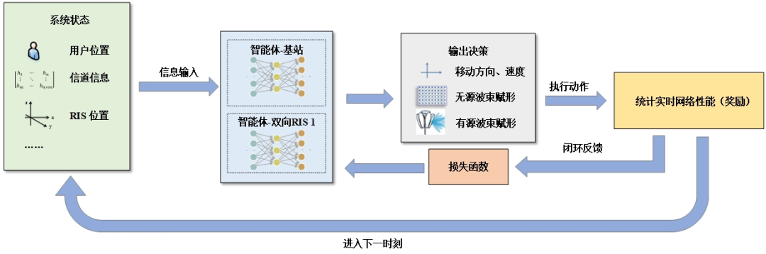 然而,由于用戶的移動和外部自然傳播條件的不斷變化,如何智能地根據(jù)當前的自然傳播條件和用戶分布智能地控制 STARS 成為了決定系統(tǒng)性能優(yōu)劣的重要因素。針對這一問題,劉元瑋團隊提出了多種基于機器學習算法(強化學習、深度學習、元學習等)的智能控制方案。