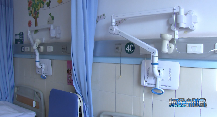 在兒科病房?jī)?nèi),前來換藥的護(hù)士打開床旁照護(hù)系統(tǒng),為小患者挑選喜歡的動(dòng)畫片,在確認(rèn)患者身份后用手持PDA掃描患者腕帶上的二維碼,識(shí)別病例等信息并登記換藥情況。有了床旁照護(hù)系統(tǒng)的動(dòng)畫轉(zhuǎn)移注意力,小患者不在緊張、害怕,整個(gè)換藥過程十分平穩(wěn)、迅速。