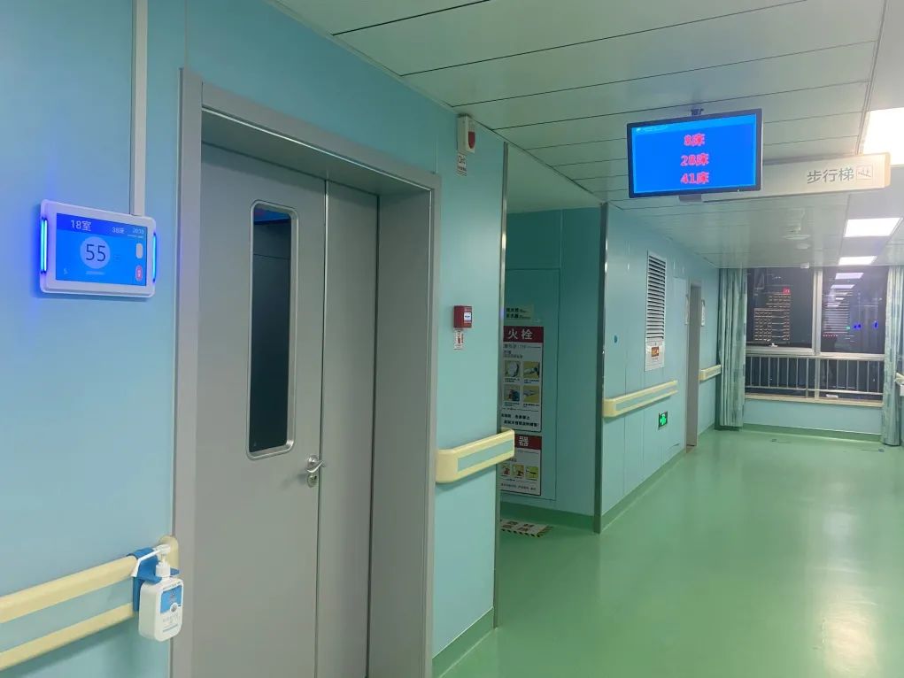 病房走廊的顯示大屏和病房門口的顯示小屏幕