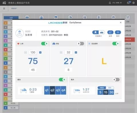 針對病情特殊或長期臥床的患者,可采用非接觸式體征采集系統(tǒng)進(jìn)行管理。當(dāng)患者離床活動后,系統(tǒng)自動報警,護(hù)士可及時干預(yù)。壓瘡高風(fēng)險的患者,對其床上活動度進(jìn)行監(jiān)測,并根據(jù)結(jié)果給予個性化的翻身管理。